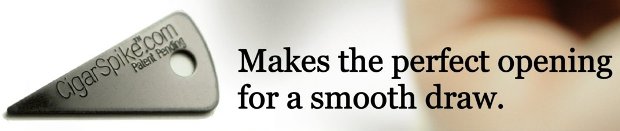 The “Cigar Spike™” has several advantages over customary methods including; preventing loose tobacco from entering the user’s mouth, compact size fits easily on key chains or in wallets, never dulls like cutter blades, serves as a gauge allowing use with any size cigar and the price is lower than any other existing tool.